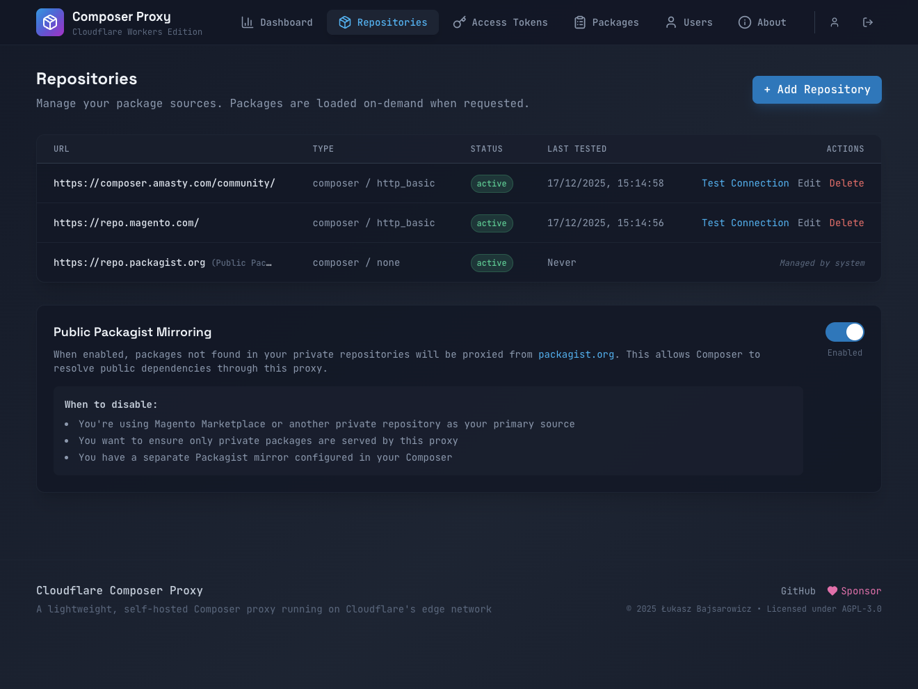 Stop paying per-seat for private package hosting. Configure your proxy once, and use standard Composer commands forever.